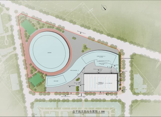 附件:《萬(wàn)源市全民健身中心恒溫游泳館項目?jì)?yōu)化設計方案》總平圖