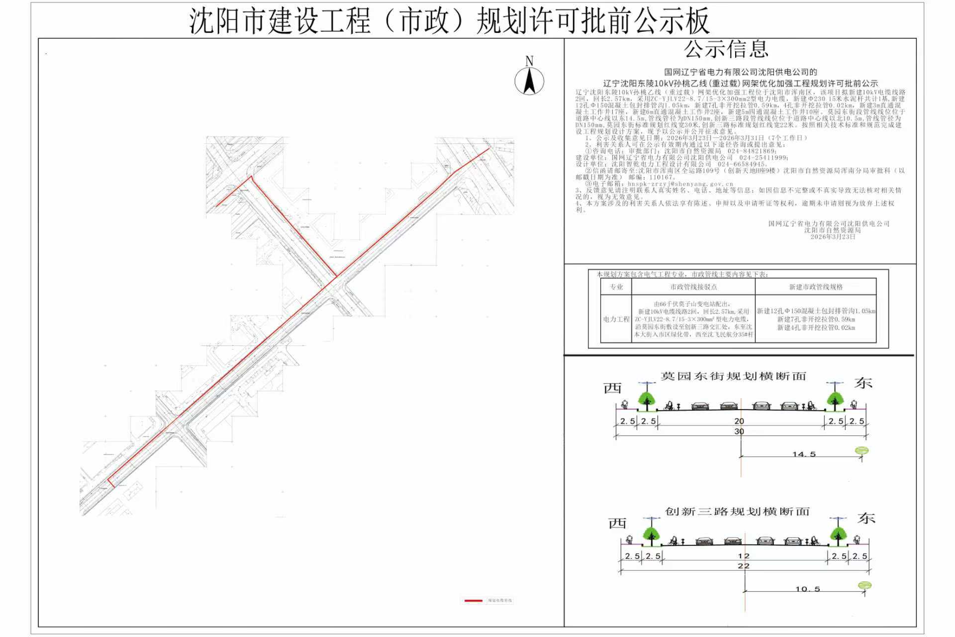 遼寧沈陽(yáng)東陵10kV孫桃乙線(重過(guò)載)網(wǎng)架優(yōu)化加強(qiáng)工程位于沈陽(yáng)市渾南區(qū),該項(xiàng)目擬新建10kV電纜線路2回,回長(zhǎng)2.57km,采用ZC-YJLV22-8.7/15-3×300mm2型電力電纜,新建Φ230?15米水泥桿共計(jì)1基,新建12孔Φ150混凝土包封排管溝1.05km,新建7孔非開挖拉管0.59km,4孔非開挖拉管0.02km,新建3m直通混凝土工作井17座,新建6m直通混凝土工作井2座,新建5m四通混凝土工作井10座。莫園東街段管線線位位于道路中心線以東14.5m,管線管徑為DN150mm,創(chuàng)新三路段管線線位位于道路中心線以北10.5m,管線管徑為DN150mm,莫園東街標(biāo)準(zhǔn)規(guī)劃紅線寬30米,創(chuàng)新三路標(biāo)準(zhǔn)規(guī)劃紅線寬22米。按照相關(guān)技術(shù)標(biāo)準(zhǔn)和規(guī)范完成建設(shè)工程規(guī)劃設(shè)計(jì)方案,現(xiàn)予以公示并公開征求意見。